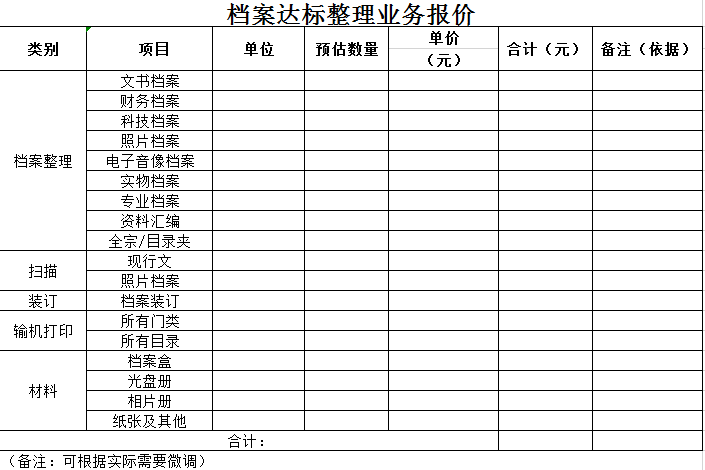 (5)本次檔案整理服務(wù)報價(按照清單單項報價);
